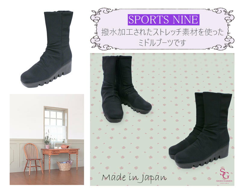 商品情報 おすすめのポイント 波型の軽さが自慢の美脚効果満点で歩きやすさバツグンの厚底ブーツです ストレッチ素材で足のフィット感がここちよく 脱ぎ履きもサイドファスナーでカンタンです しかも撥水素材なのでお出かけ先の急な雨でも安心できるのがいいですね♪
