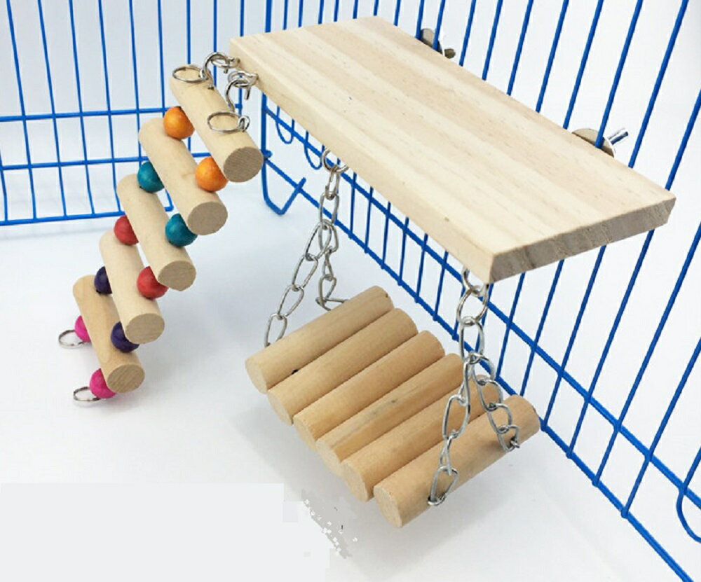 ワズチヨ 小動物 ケージ カラフル おもちゃ アクセサリ 玩具 ハムスター デグー リス ペット 木製 ステージ 吊り橋 はしご 3点セット