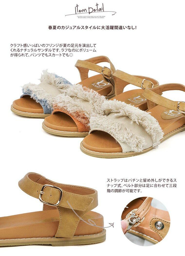 クラフト感いっぱいのフリンジが夏の足元を演出してくれるナチュラルサンダル。
