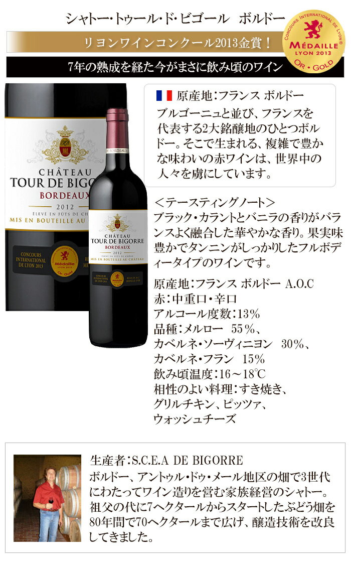 シャトー・トゥール・ド・ビゴール ボルドー 赤(赤:中重口・辛口) ☆
