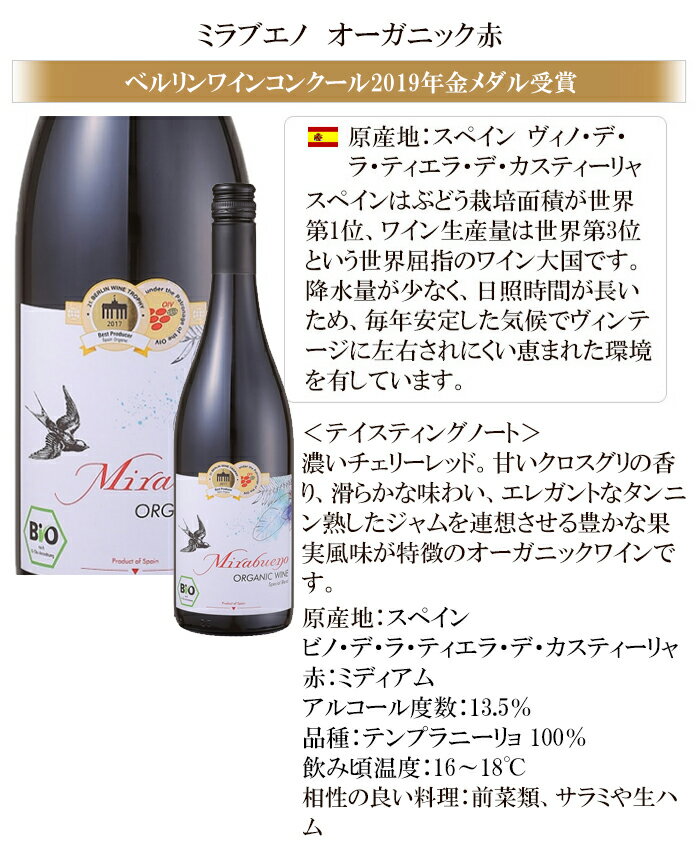 ミラブエノ オーガニック 赤(赤:ミディアム) ☆
