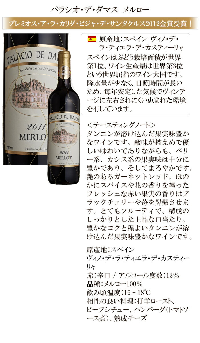 パラシオ・デ・ダマス メルロー(赤:辛口)☆
